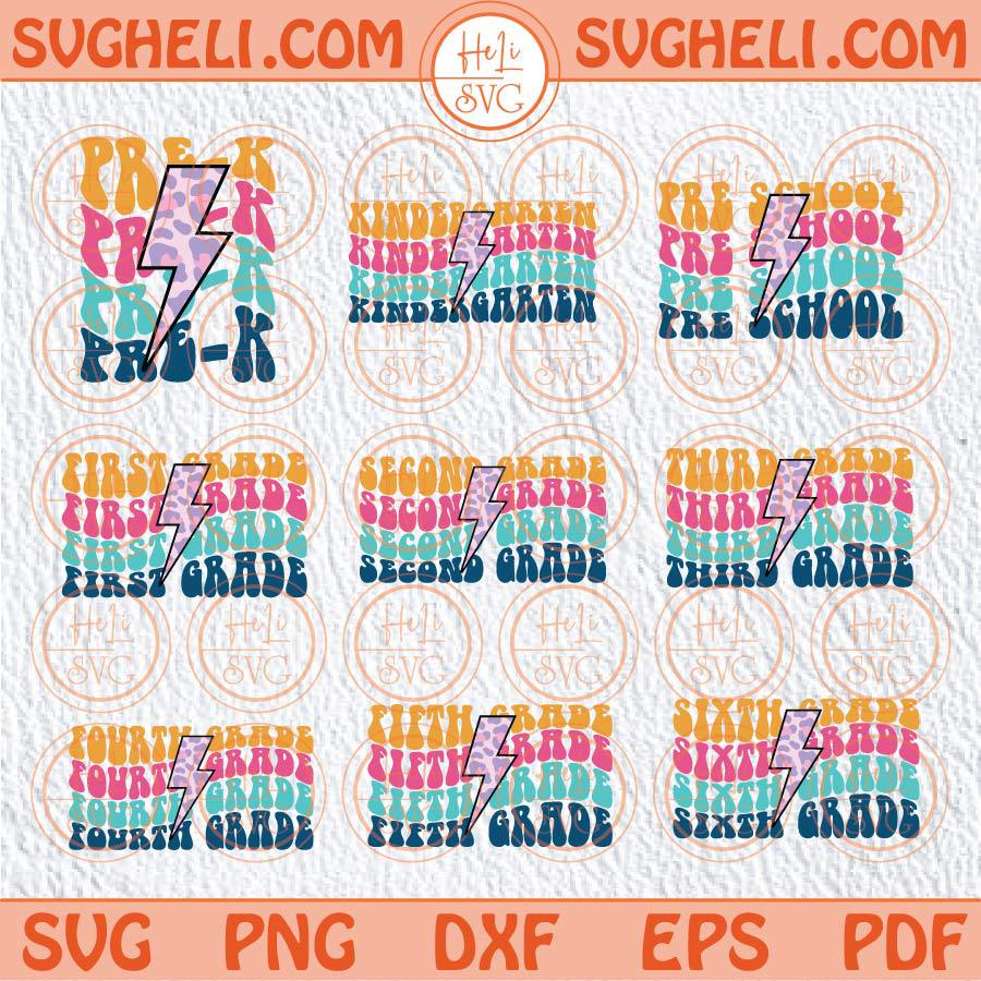 Back To School Svg Bundle Grade Wavy First Day Of School Svg Png Sublimation Dxf Eps Files